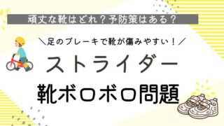 キックバイクストライダーで靴のつま先がボロボロ!頑丈長持ちの靴と破れる予防策紹介 ストライダーに乗ると、子どもの靴がすぐにボロボロになる ――そんな悩みを抱えるパパママは少なくありません。ストライダーで靴がすぐにボロボロになる理由は、足でブレーキをかける時につま先が強く擦れたり、靴の素材に負担がかかったりするためです。特... 2025.11.01 2025.11.25キックバイク