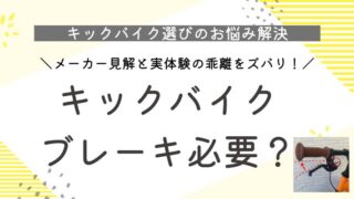 キックバイクキックバイクブレーキ必要?不要?メーカー見解と実体験の乖離をズバリ! キックバイクを買うとき、いろんな種類やスペックの違いがあって悩みますよね。そのなかの一つ、「ブレーキが必要かどうか」について、気になる人もいるのではないでしょうか。私はブレーキ付き・ペダルを後付けできる3wayタイプを買っています。が、子供... 2025.11.04 2025.11.25キックバイク